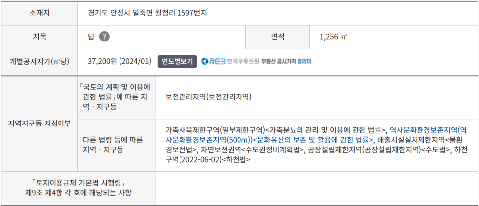 [토지] 안성시 일죽면 월정리 17번국도(죽양대로) 인근 보전관리지역 380평 매매